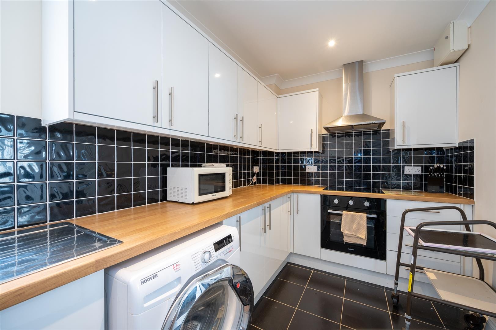 The accommodation comprises of two double bedrooms and one generous single bedroom, the master benifiting from having an ensuite and shower unit. A family modern bathroom complete with a bath. A newly fitted kitchen with white gloss kitchen units, sleek wooden worktops, integrated oven and induction hob. Large living space with ample space for lounge furnishings and dining table.