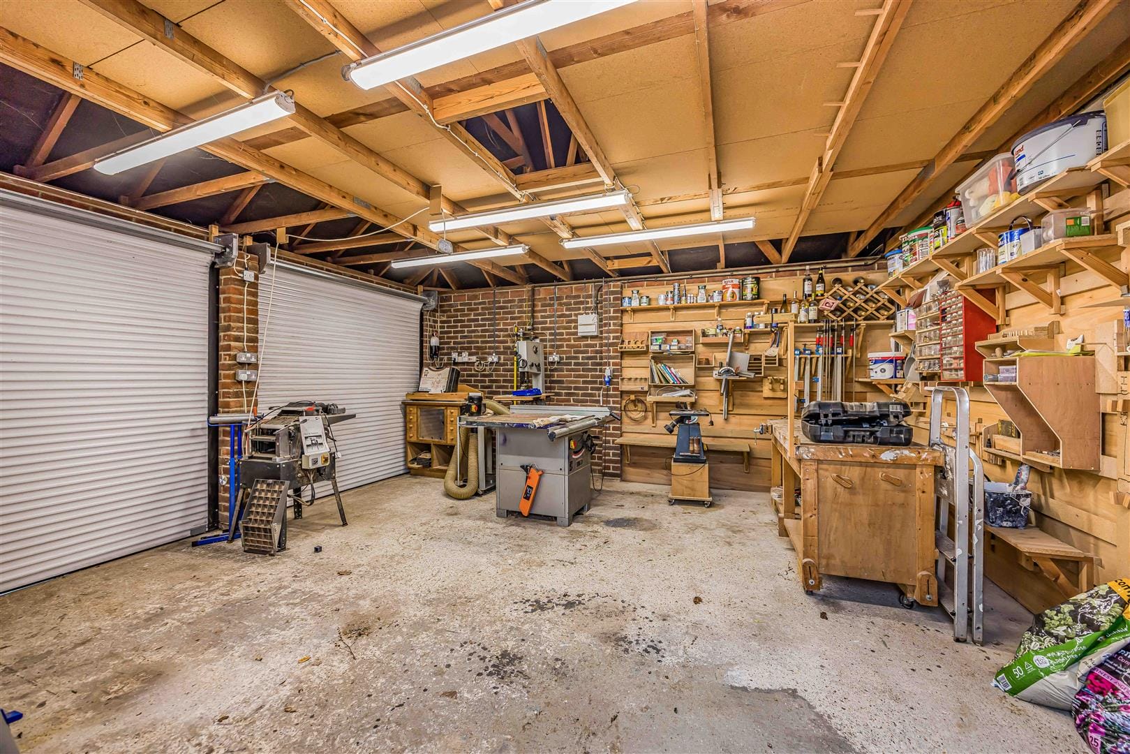 - Substantial double garage/workshop with power & electric doors