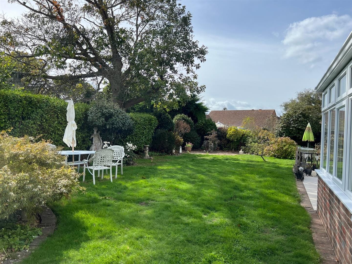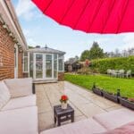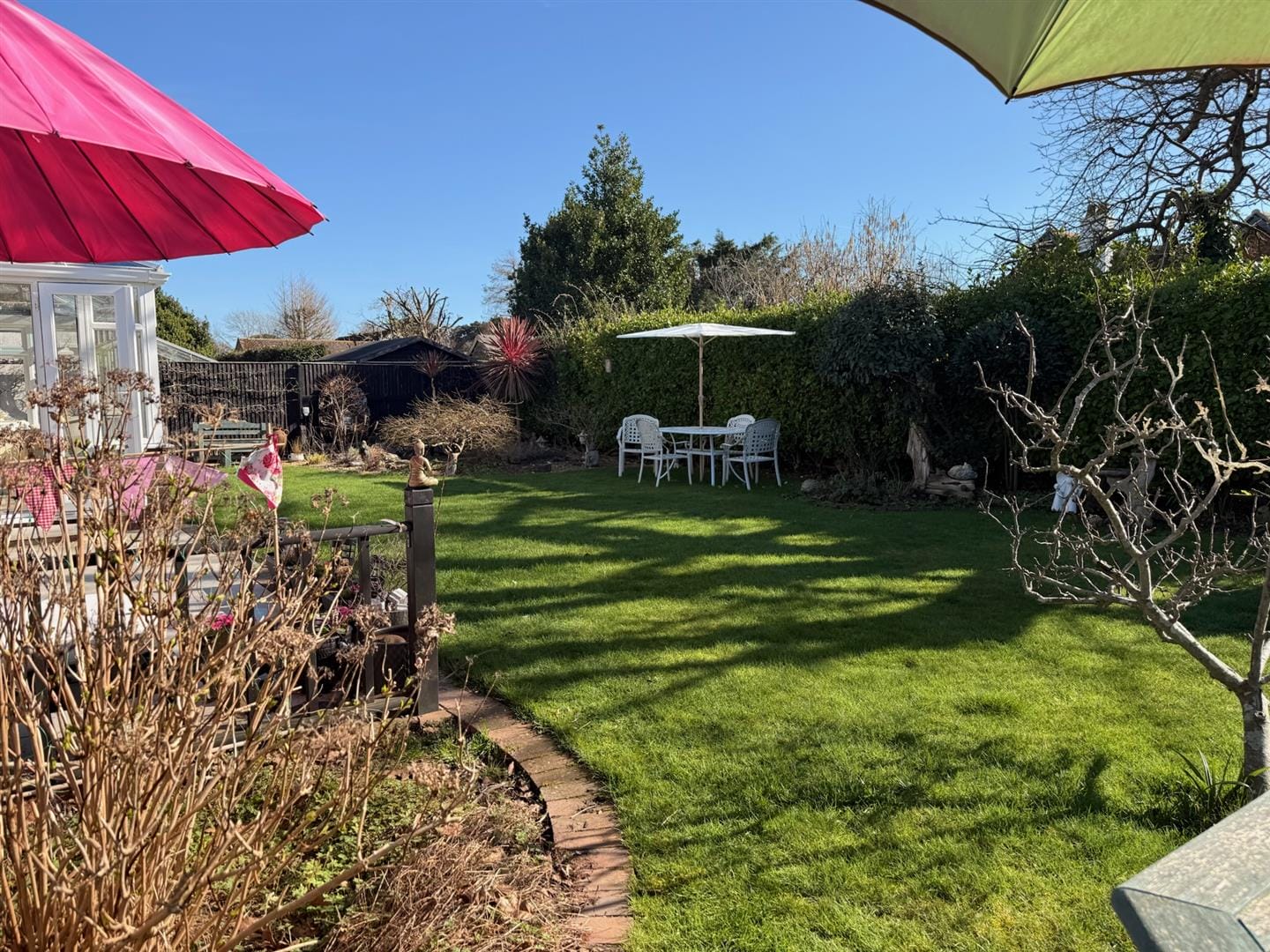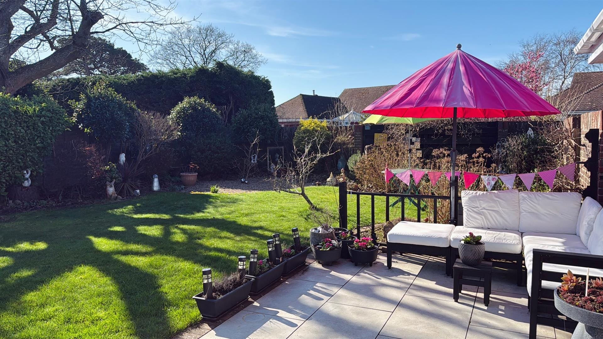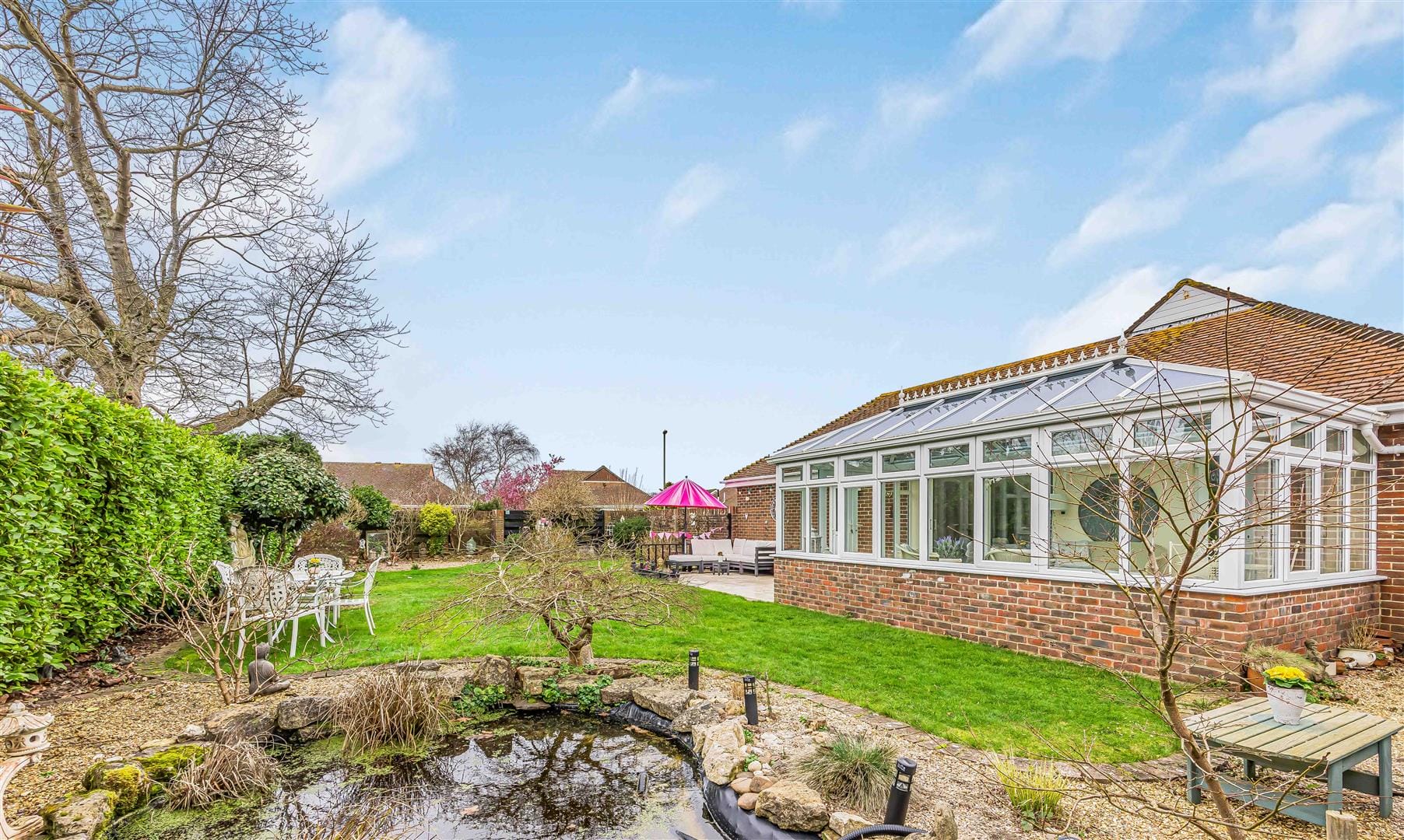 - Stunning south-facing garden with patio, pond & fruit trees