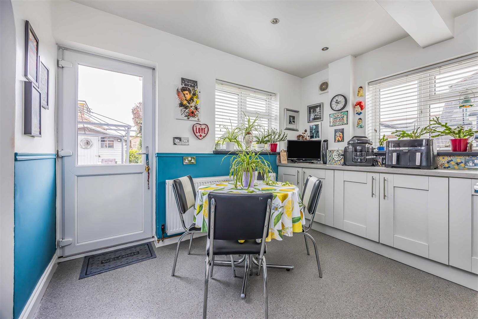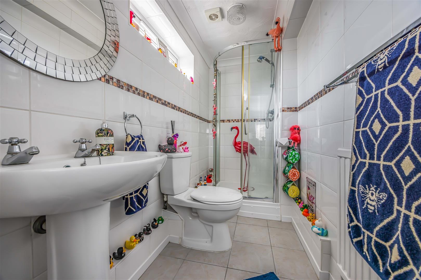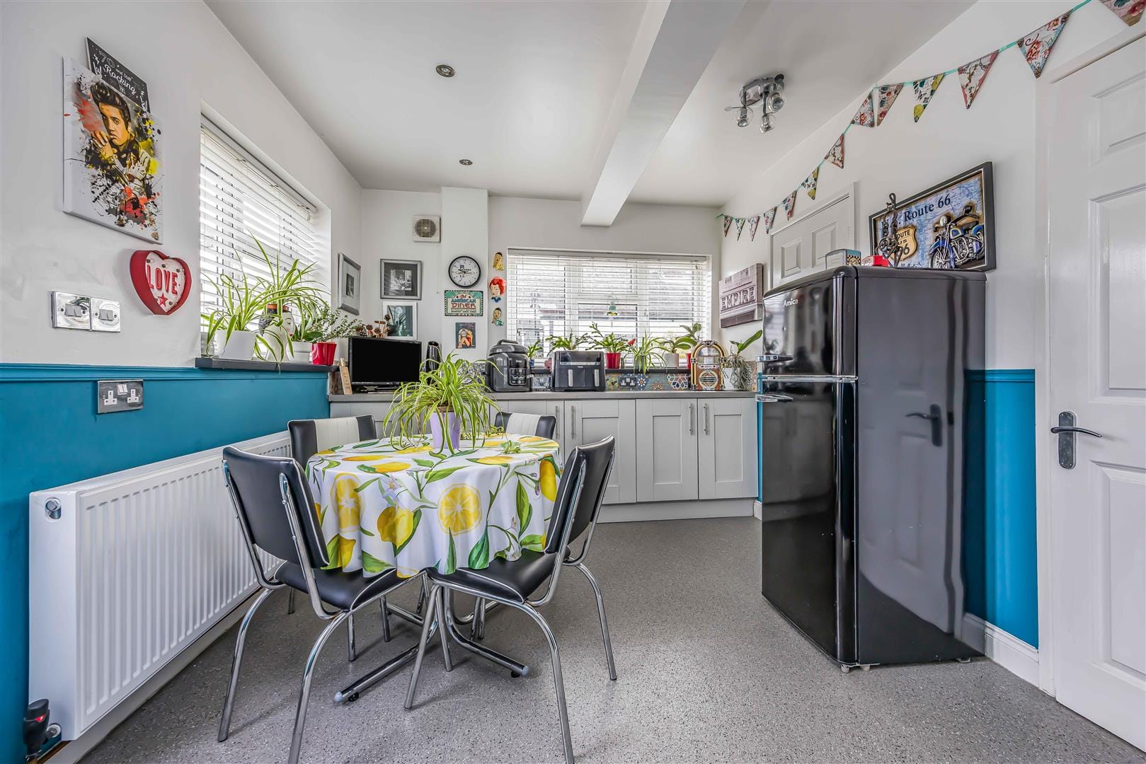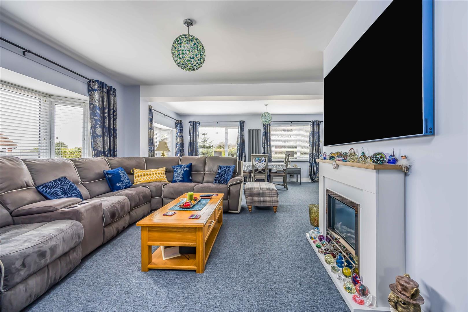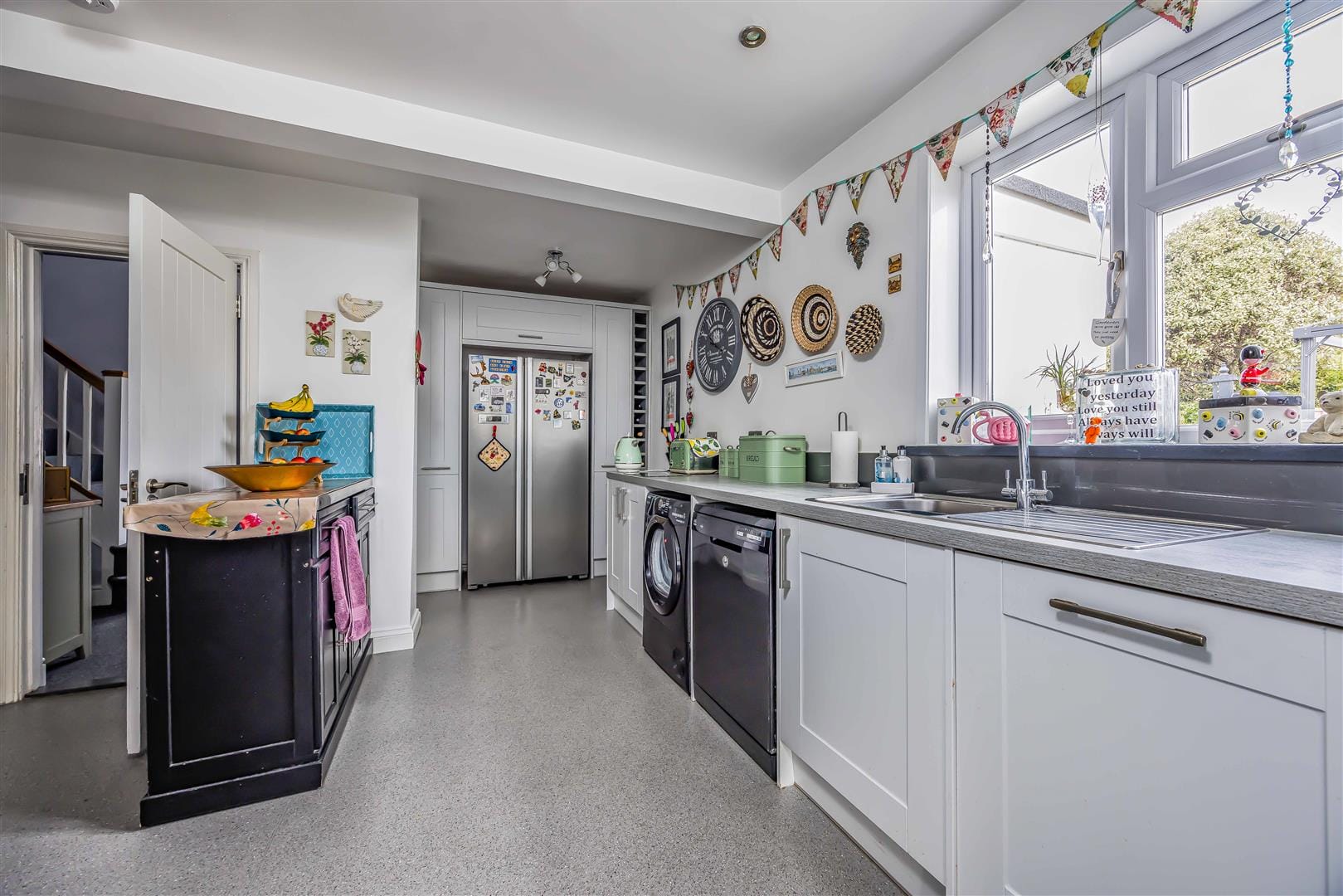 Entering through an inviting gate and double-glazed porch, you’re welcomed into a hallway that provides access to the ground floor rooms. The expansive dining room features a stunning bay window and two dual-aspect windows. The adaptable sitting room is brightened by multiple windows and includes access to a convenient downstairs WC with shower facilities. The kitchen is both functional and stylish, featuring a breakfast area and a central island. The separate utility room provides an additional WC for practical ease.