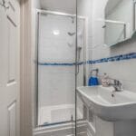 Upstairs, a large landing leads to the family bathroom and the master and second bedrooms. The master suite boasts built-in storage, a dressing room that makes an ideal home office, and opens to a balcony with stunning harbour views. Bedroom two is another generous double with an en-suite and built-in storage.