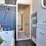 Upstairs, you’ll find two double bedrooms, each tastefully decorated. The modern bathroom is also located on the first floor and includes a contemporary suite with both bath and shower facilities.