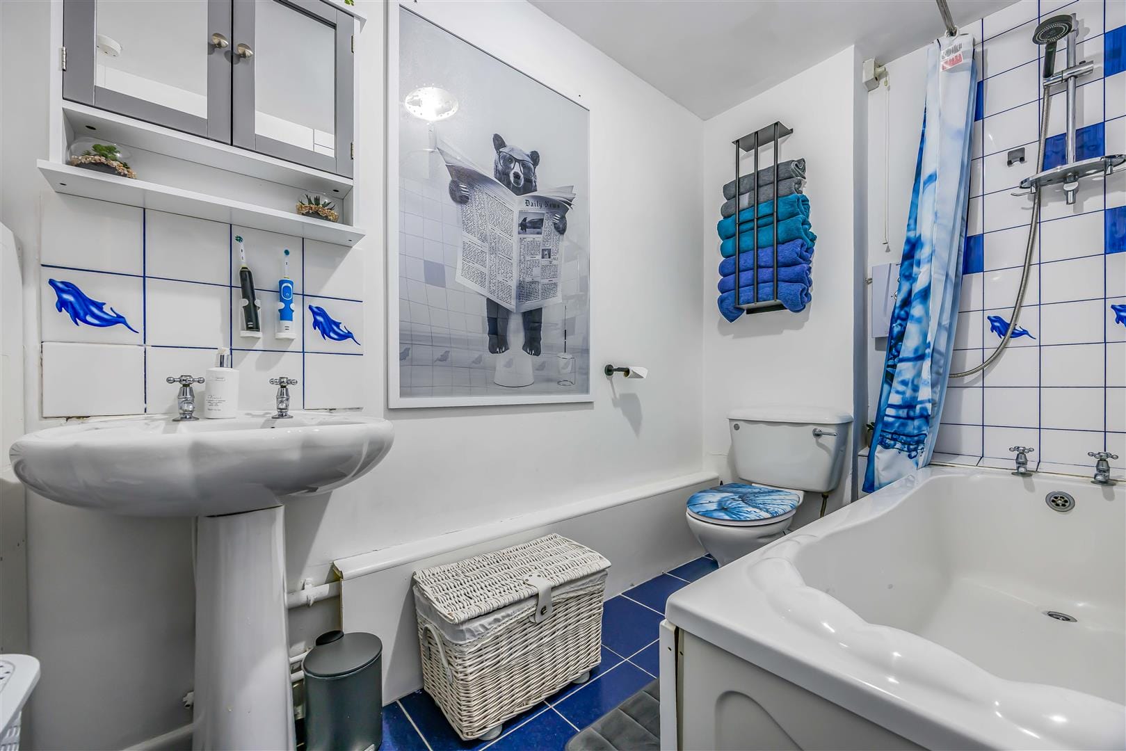 There are two generously sized double bedrooms, both with modern electric radiators and UPVC double glazed windows. The stylish bathroom includes a white suite with a panelled bath, Bristan Glee electric shower, pedestal wash basin, and WC, with fully tiled walls to the bath area and a fitted extractor fan.