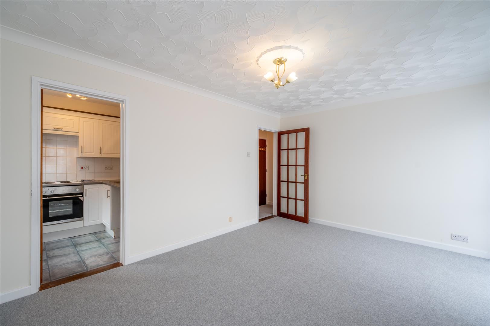 The flat itself is situated on the ground floor at the north side of the block. The accommodation includes an entrance hall with a storage cupboard, a generously sized lounge with ample space for a dining area, and a well-proportioned kitchen. The newly fitted shower room has been finished to a high standard. There is one double bedroom and one single bedroom. The property benefits from electric heating and double glazing throughout.