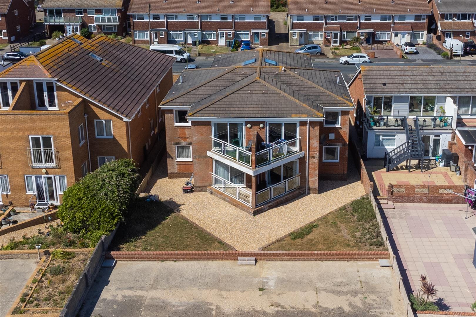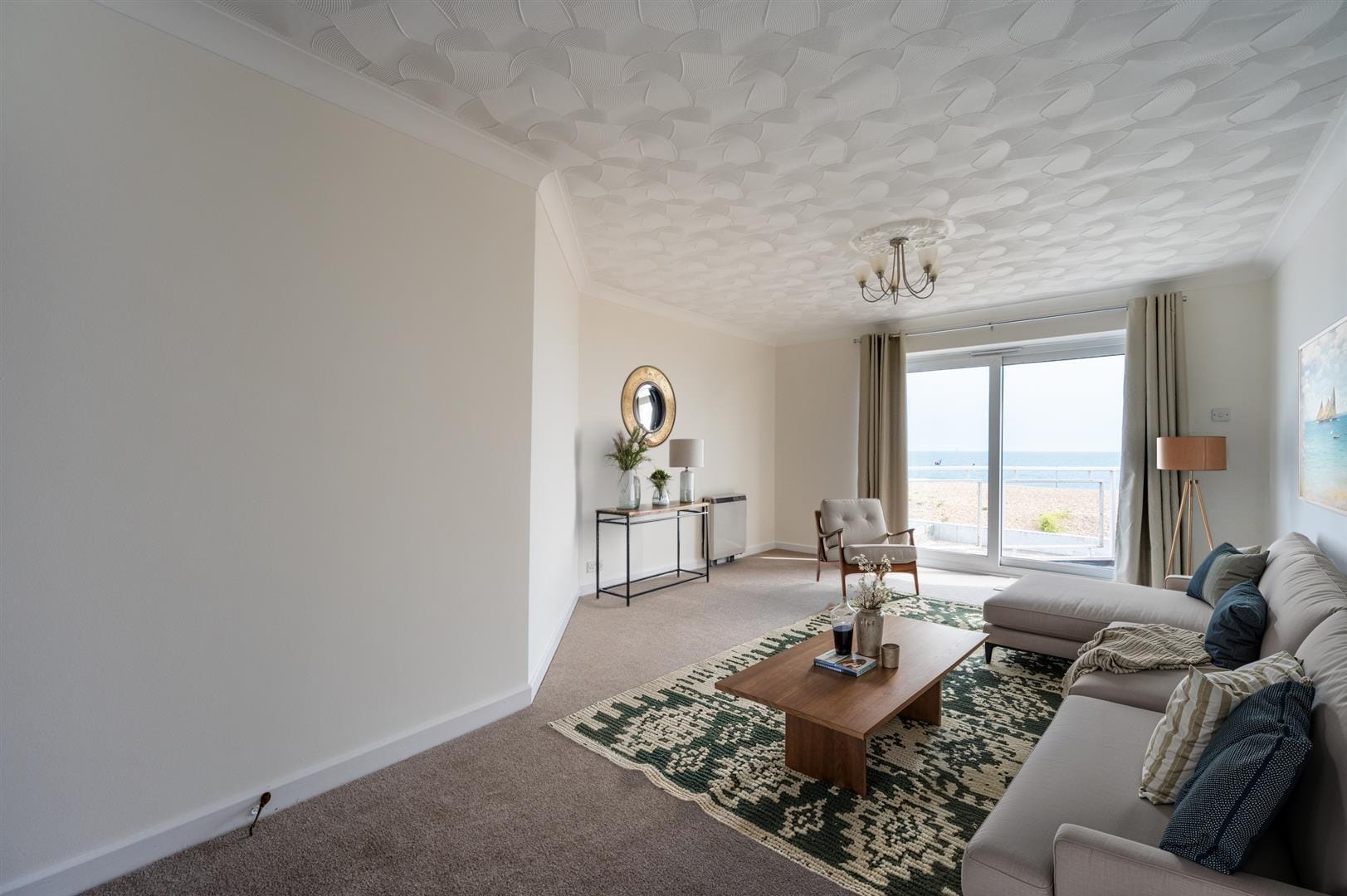 The flat features two bedrooms, including a generously sized double with sea views, and a modern bathroom complete with bath and overhead shower. Additional benefits include double glazing, electric heating, and a designated parking space. The well-maintained communal gardens seamlessly blend into the coastal promenade – perfect for evening strolls or morning coffee with a view.